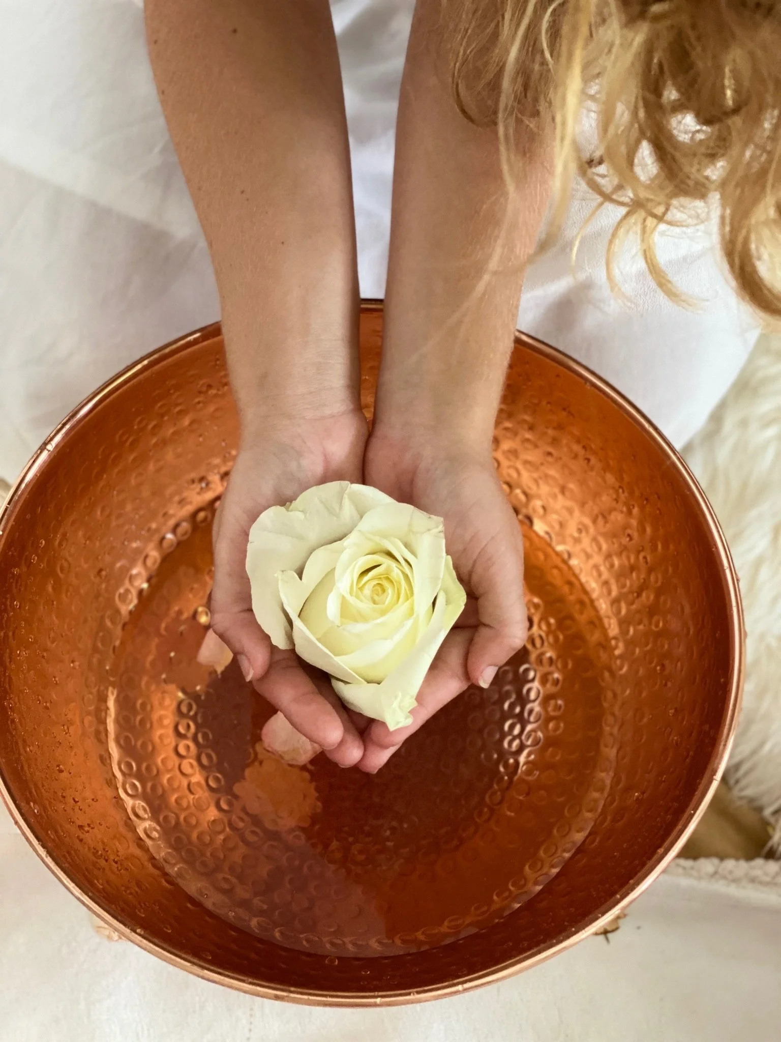 A rose + magnesium bath with vocal sound healing, sacred songs, anointing oils, and prayerful blessing.